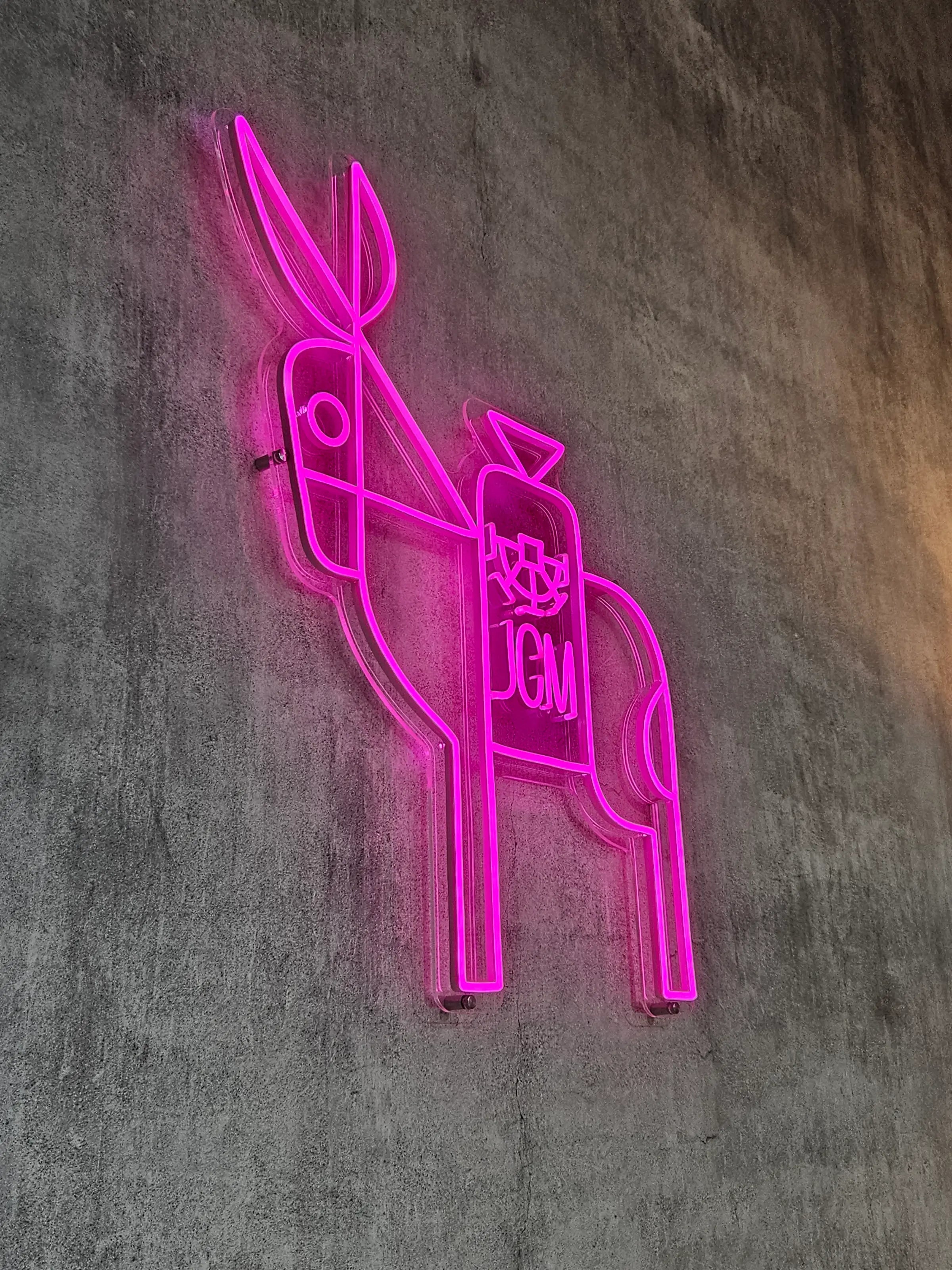 A neon signature sign is a custom light element created based on your signature, logo, or name. It is made from LED tubes and integrated into an acrylic box.